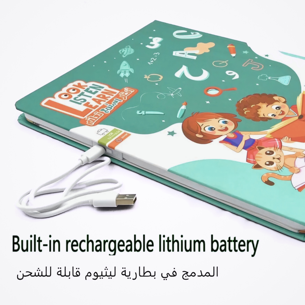 📚 كتاب تعليمي تفاعلي للأطفال تعلّم ممتع بالصوت والصورة! 🌟 📖 حروف وأرقام وكلمات وأسماء حيوانات وأدعية ومحتوى إسلامي – بالعربية والإنجليزية، بأسلوب ممتع ومبسط. 🎁 مثالي للأطفال من عمر 3 سنوات فما فوق 🔋 قابل لإعادة الشحن | 🎵 مزوّد بأصوات وأناشيد | 📏 الحجم: 28×22×2.5 سم | 💪 خفيف ومتين